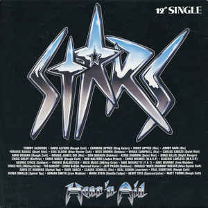 1986 GONG SLPXL 37214 - HUNGARY LP Metaloví hudobníci sa nechali inšpirovať charitatívnym projektom WE ARE THE WORLD a nahrali spoločne pieseň STARS ako singel a LP Hear´n Aid ako metalovú kompiláciu s najväčšími hviezdami KISS,SCORPIONS,DIO, ACCEPT, JIMI HENDRIX...Samotnú skladbu Stars nahrali a naspievali vtedajšie najväčšie metalové hviezdy, ako ROB HALFORD, RONNIE JAMES DIO, VINCE NEIL, WASP, QUIET RIOT, TED NUGENT, YNGWIE MALMSTEEN, DOKKEN, NERAL SCHON, BLUE OYSTER CULT, QUIET RIOT, BRAD GILLIS /NIGHT RANGER/,VIVIAN CAMPBELL, VINNIE APPICE, GEOF TATE /QUEENSRYCHE/, JIMMY BAIN, ADRIAN SMITH, DAVE MURRAY,GEORGE LYNCH, EDDIE OJEDA /TWISTED SISTER/, TOMMY ALDRIDGE. Vzácne vydanie vg++/vg++