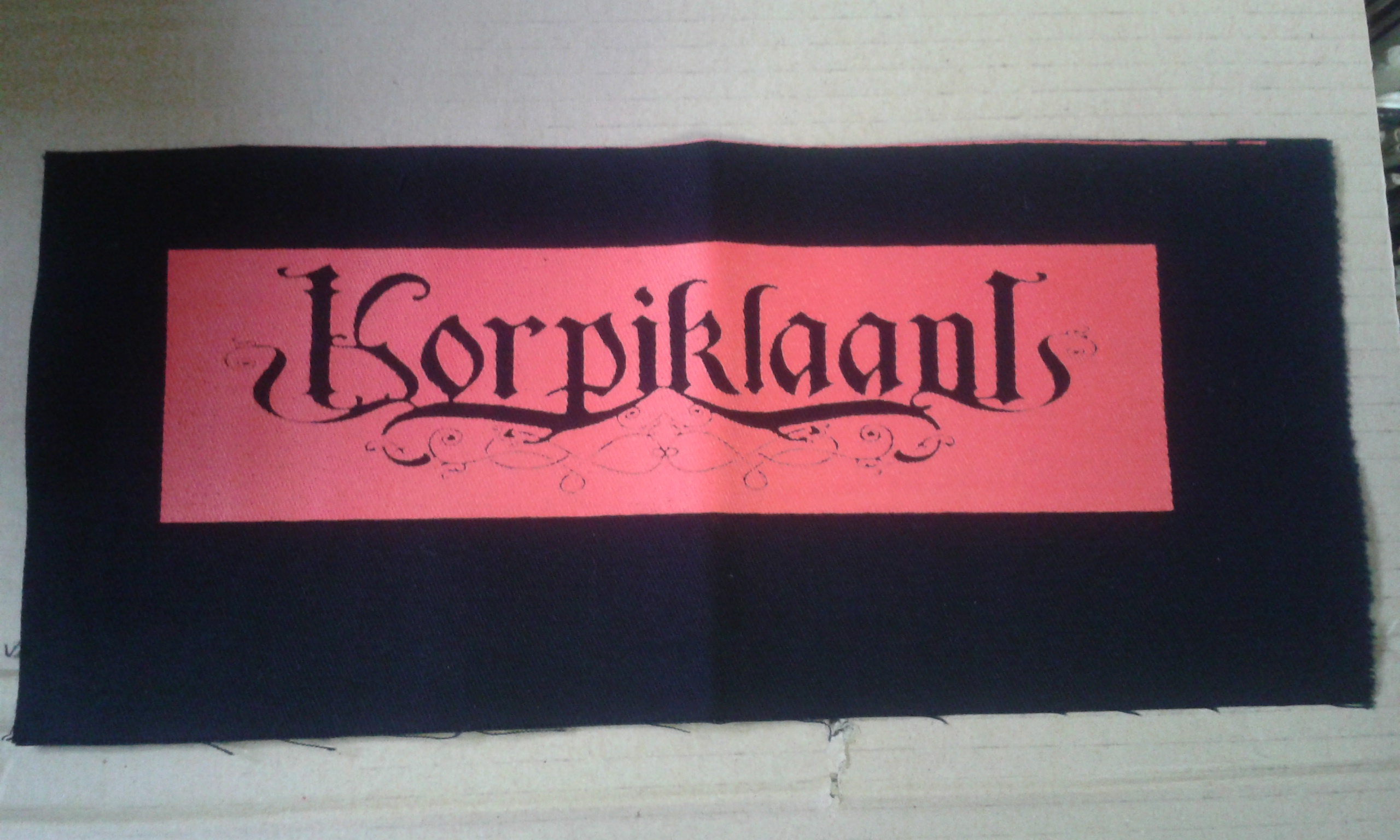 PLÁTENÁ POTLAČENÁ NÁŠIVKA S ROZMERMI 22 cm x 7 cm.