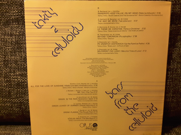 Tracklist Hide Credits A1 Giochi D'Infanzia (Téma Z Filmu La Agazza In Prestito) Arranged By – Z. Novák* Written-By – Armando Trovajoli* A2 Nelle Tue Braccia (Téma Z Filmu Tre Notti D'Amore) Arranged By – J. Hnilička* Written-By – C. Rustichelli* A3 Star Is Born (Téma Z Rovnomenného Filmu) Arranged By – Z. Novák* Written-By – B. Streisand* A4 Weekend With Mary (Téma Z Filmu Femina Riders) Arranged By – Z. Novák* Written-By – S. Cipriani* A5 A Teraz Sa Rozhodni (Téma Z Rovnomenného Filmu) Arranged By – I. Vavrda* Written-By – A. Brezovský* A6 My Lovely And Tender Animal (Téma Z Rovnomenného Filmu) Arranged By – J. Hnilička* Written-By – J. Doga* B1 D'Artagnan And The Three Musketeers (Téma Z Rovnomenného Filmu) Arranged By – M. Vidlák* Written By – V. Rjašancev Written-By – M. Dunajevski* B2 Escalation (Téma Z Rovnomenného Filmu) Arranged By – J. Hnilička* Written-By – E. Morricone* B3 Unni Si (Téma Z Filmu Mare Matto) Arranged By – M. Bártek* Written-By – C. Rustichelli*, F. Rinaudo* B4 Jánošík (Téma Z Rovnomenného Filmu) Arranged By – M. Bártek* Written-By – J. Matuszkiewicz* B5 W Pustyni Od Szosy (Téma Z Rovnomenného Filmu) Arranged By – M. Vidlák* Written-By – A. Korzynski* B6 Dostih (Téma Z Rovnomenného Filmu) Arranged By – M. Vidlák* Written-By – Z. Barták*