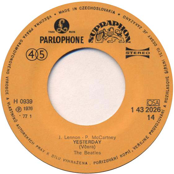 1978 SUPRAPHON SP plat?a Ve?ni vzácny singel ve?kého hitu ex-Beatla v edícii Diskotéka pod ?íslom 19. ,vg++/vg++